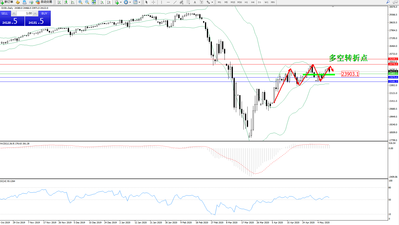 道琼斯指数511日(周一)收盘下跌109.30点,跌幅0.45%,报24221.99点。投资者担忧二次疫情的爆发风险,在告别了上周的非农后,本周市场将关注美国通胀数据和零售数据。期货市场定价美国负利率可能性是市场对冲的必然结果。押注美联储利率走势的联邦基金利率期货上周发出信号,预测美联储最早在11月将利率降至零下。由于各国央行和政府采取了前所未有的货币和财政刺激措施,以及各国在经历了长时间的封锁后开始努力恢复经济,股市近期出现反弹。当前的市场行动标志着一种宽慰性的反弹,而不是V型复苏的开始。就收益和国内生产总值(GDP)的前景而言,市场过于乐观。当前疫情引发的供应面冲击或将演变为需求面冲击,从而导致一场更为传统的衰退。