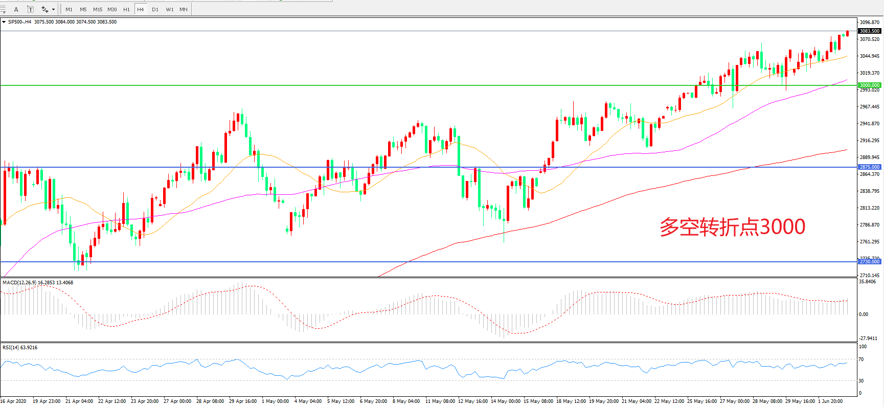 多空转折点:3000.00
