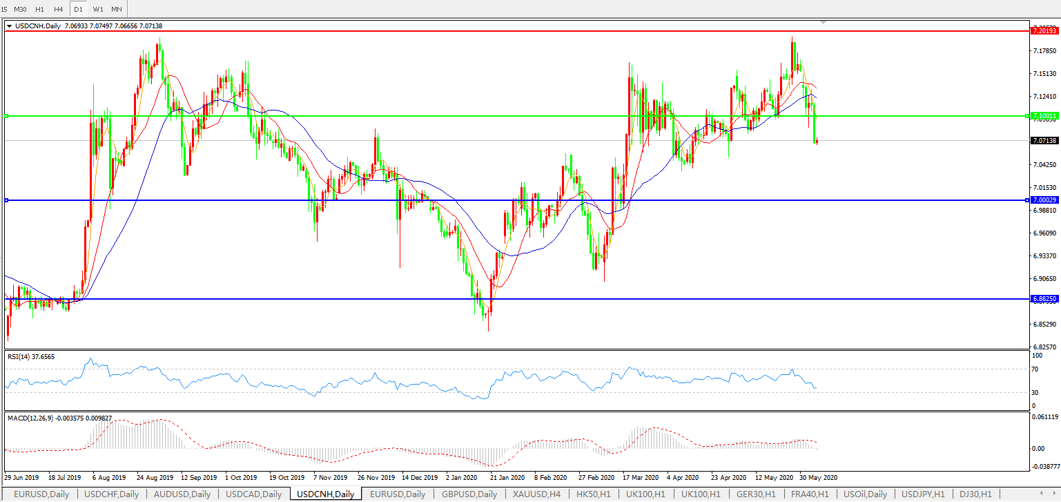 交易策略: 在7.1000之上,看涨,目标价位为7.2000,然后为7.3000。