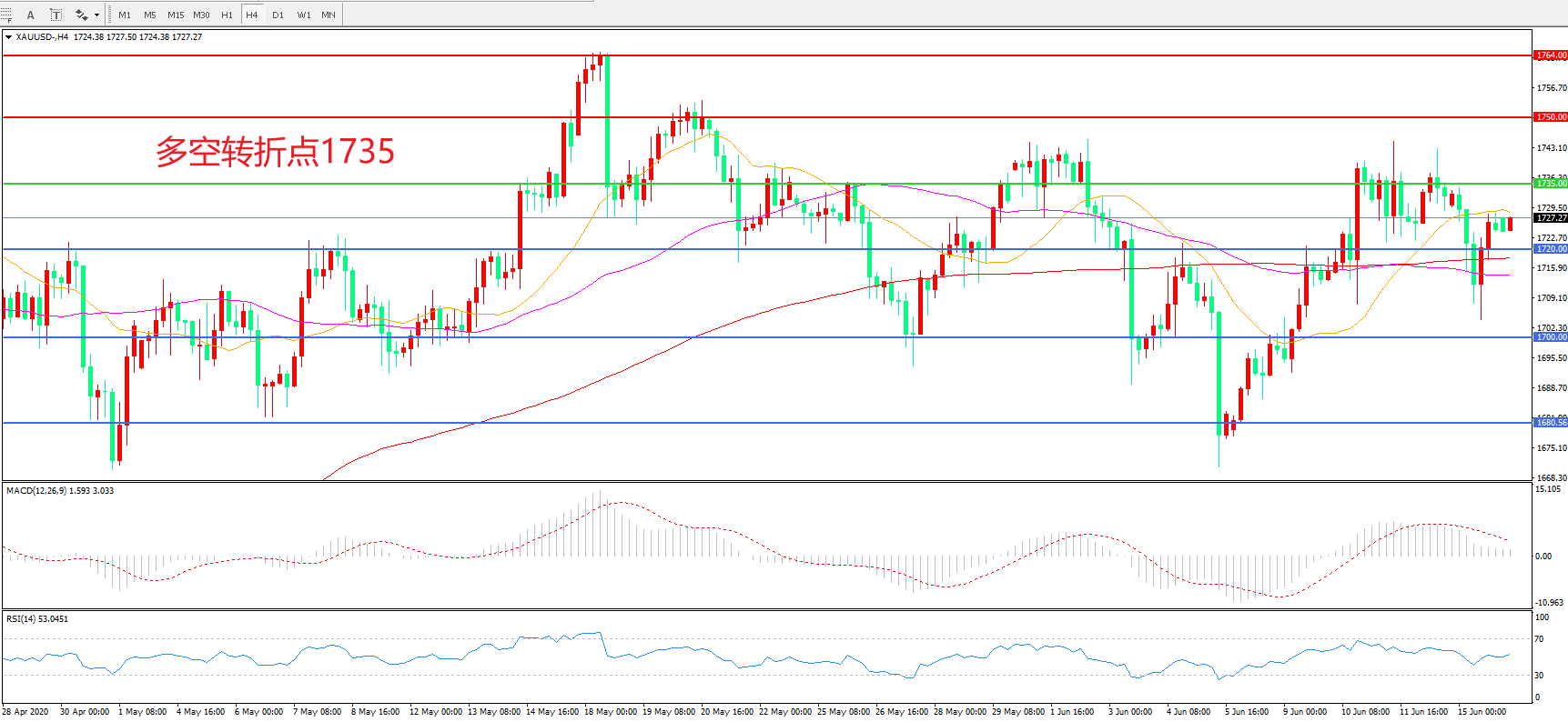 交易策略:在1735.00之下看跌,目标1720.00   1700.00