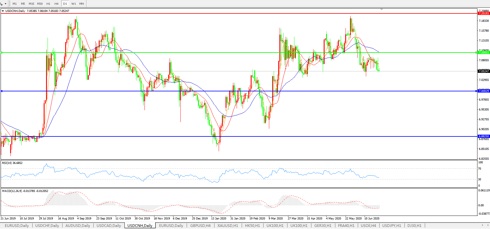 美元兑人民币USDCNH    日线图: