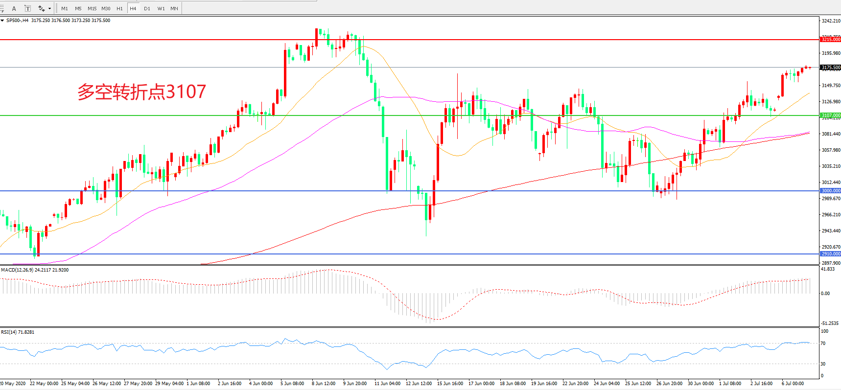 多空转折点:3107.00