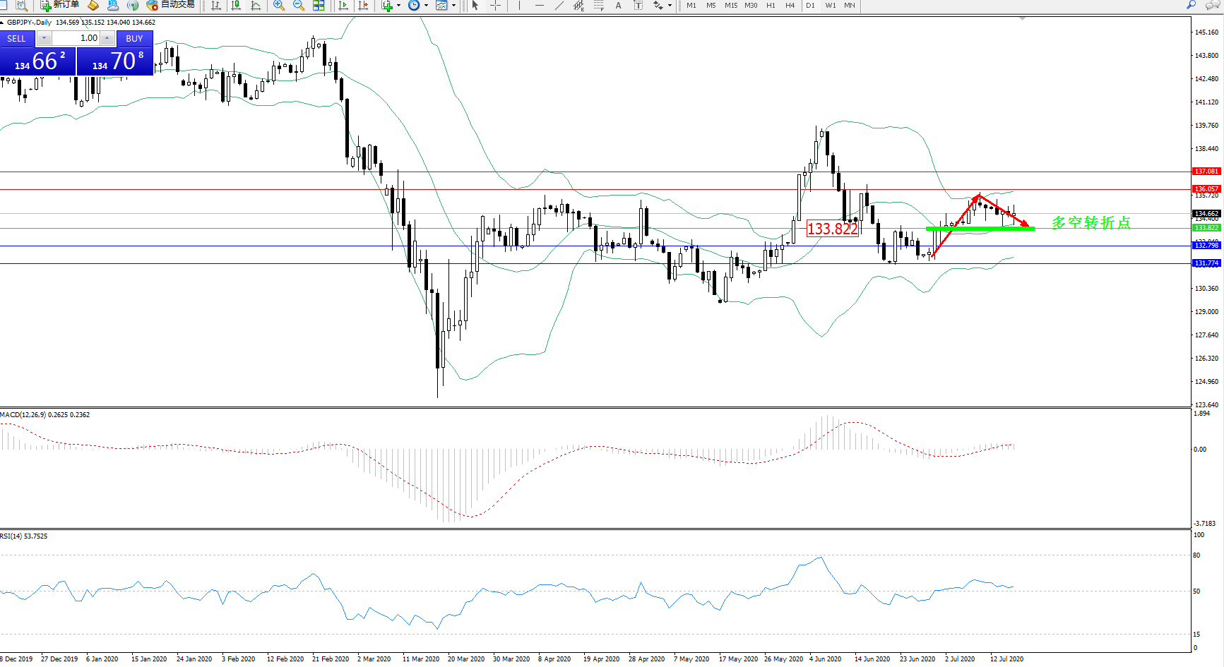 交易策略:133.822上方看涨,目标136.057、137.081