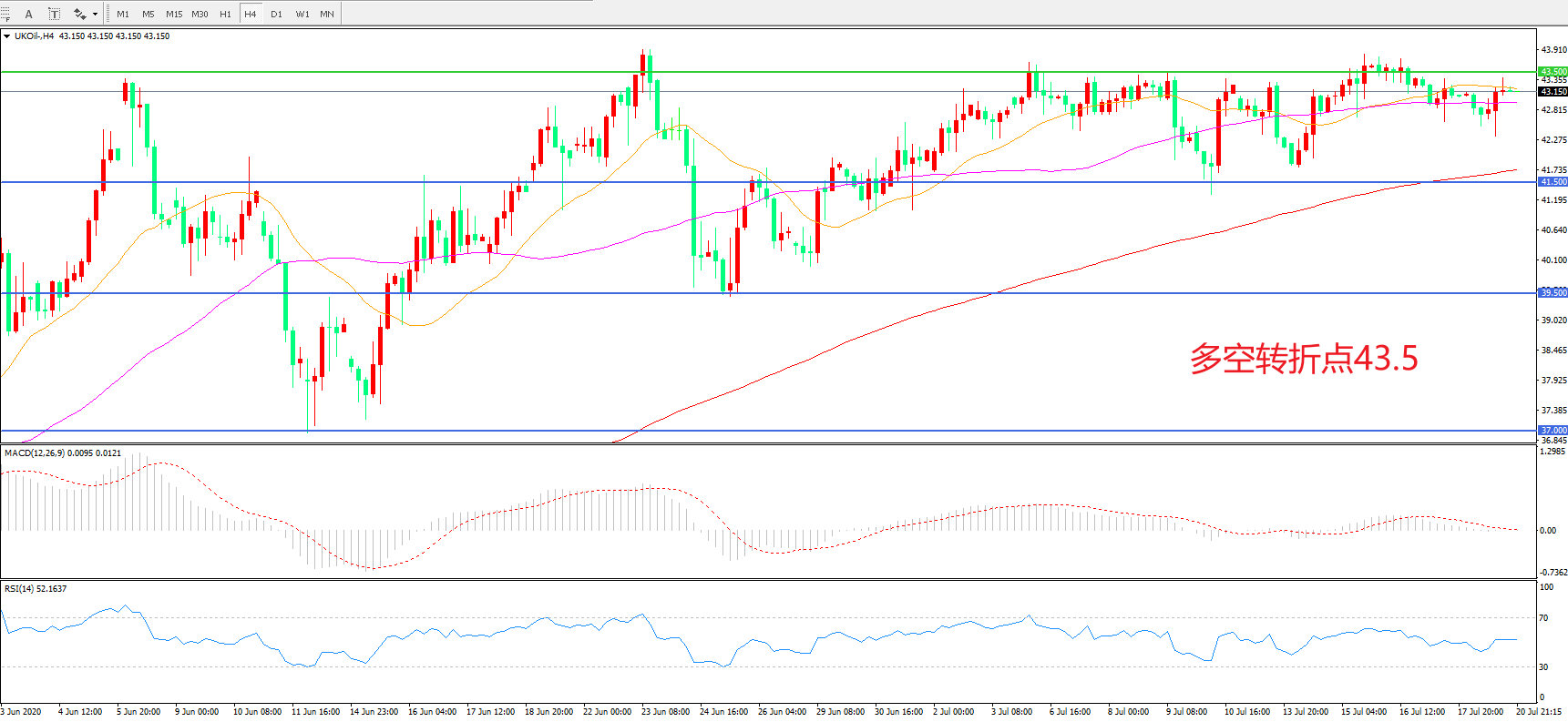 多空转折点:43.50