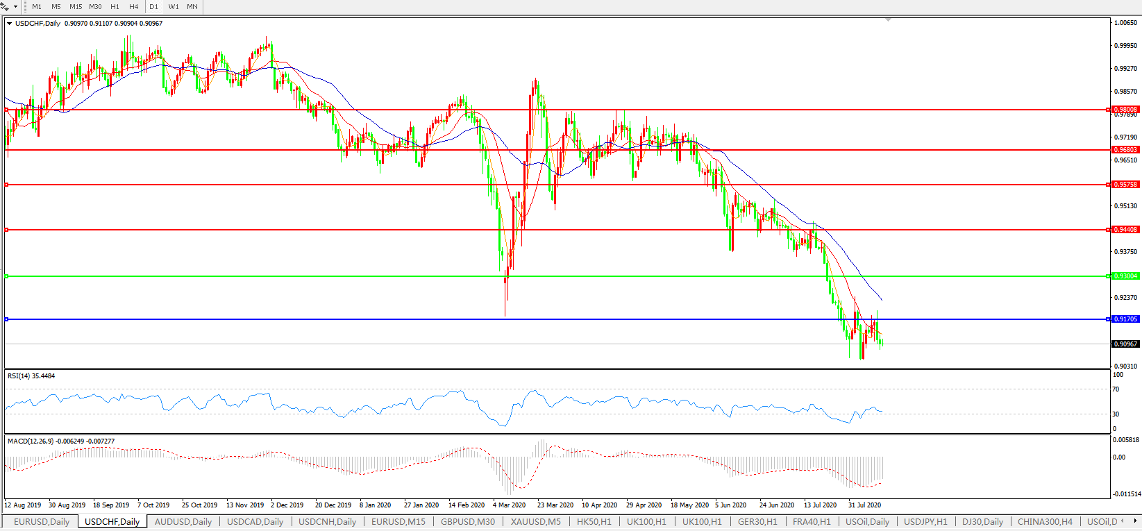 美元兑瑞郎USDCHF 日线图: