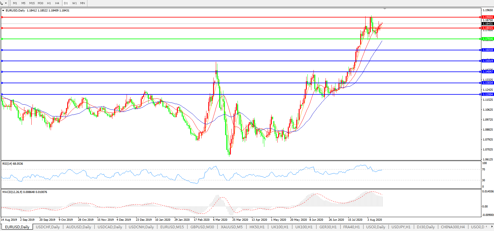 欧元兑美元EURUSD 日线图: