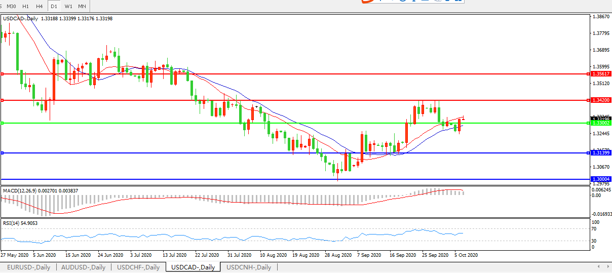 交易策略:在1.3300之上,看涨,目标价位为1.3420、1.3560