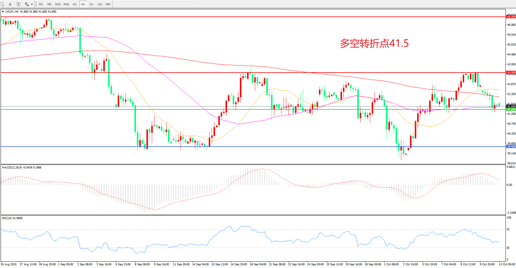 交易策略:  在41.50之上看涨,目标43.50      46.50