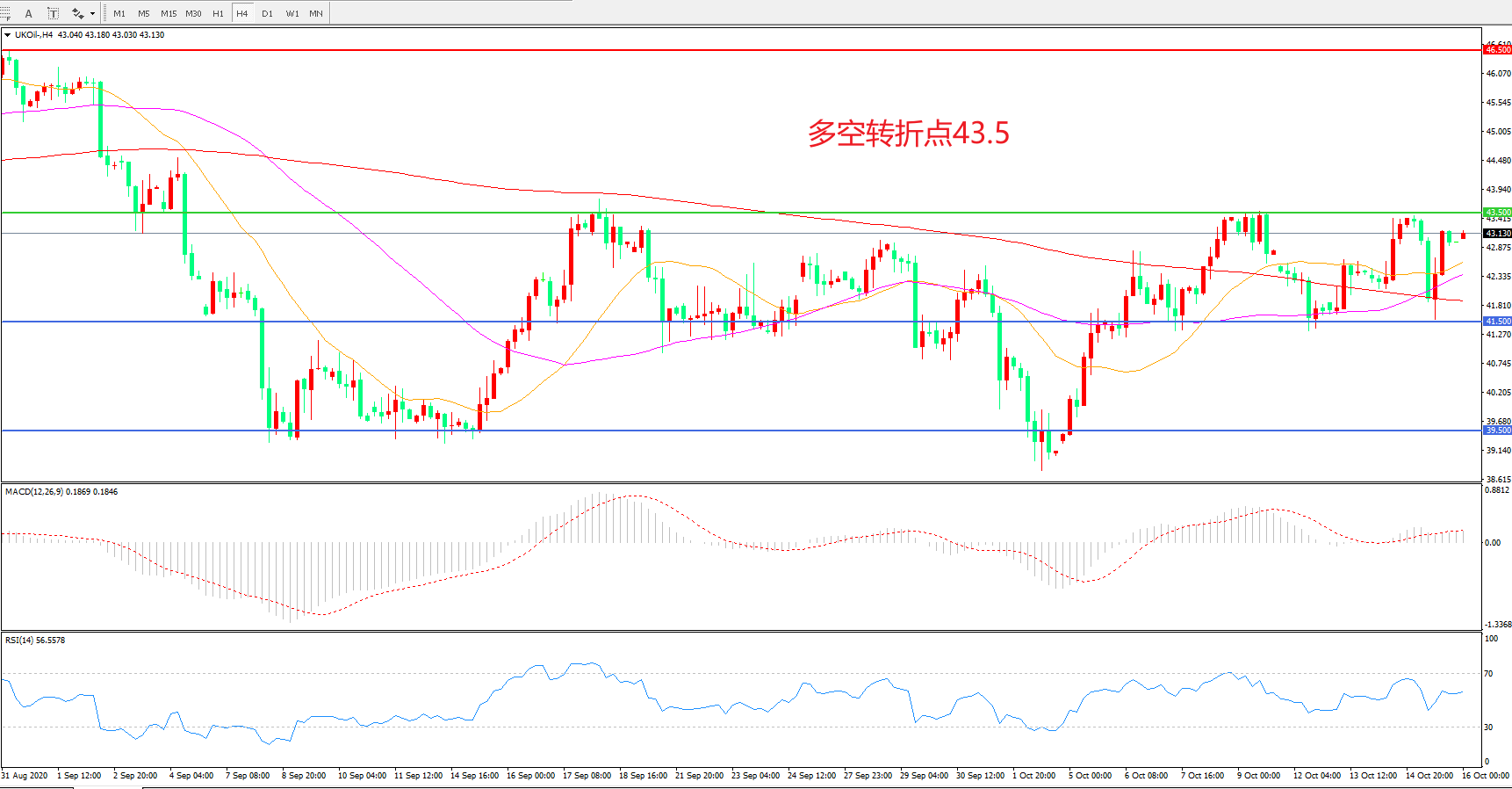 多空转折点:43.50
