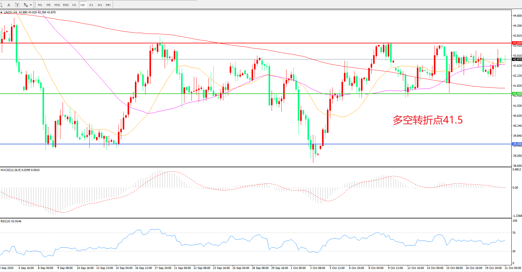 交易策略:  在41.50之上看涨,目标43.50      46.50