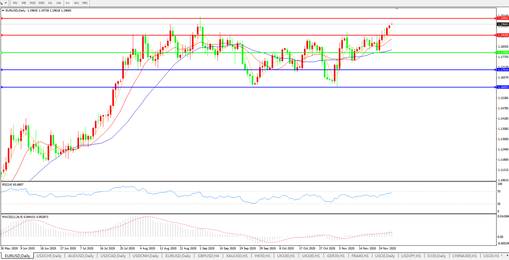 欧元兑美元EURUSD 日线图: