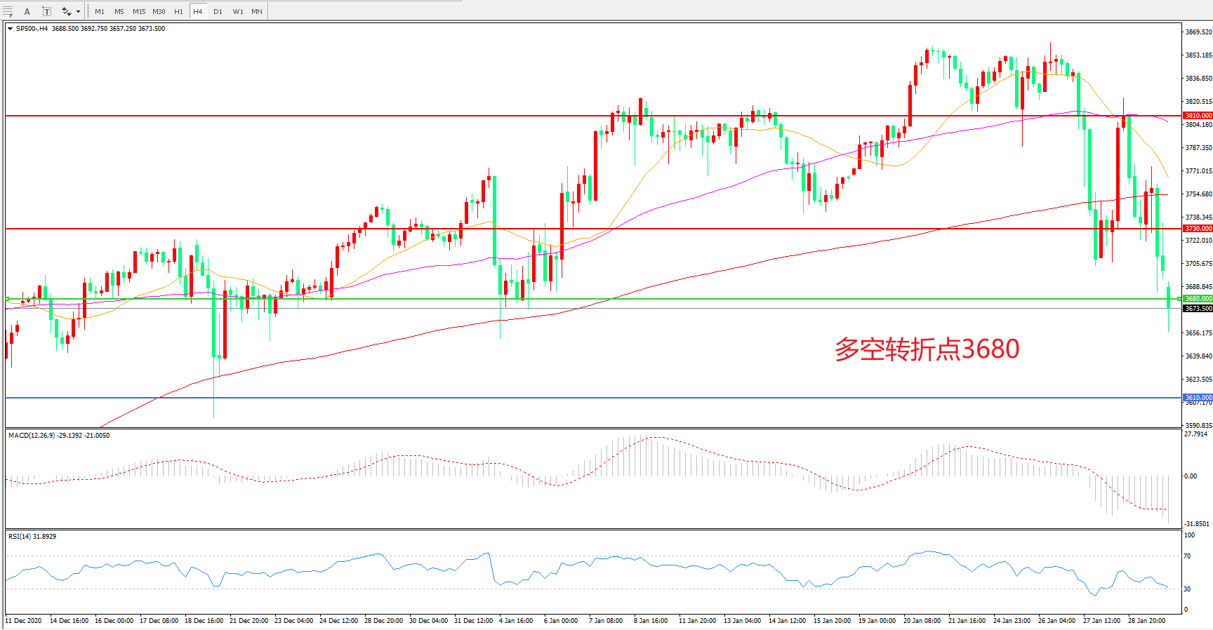 上周由于担心近日散户逼空事件发酵,外加对疫苗前景不确定,美股遭受重挫,标普500今日开盘低开低走,截止发稿前收报3660.50点。美国证券交易委员会称,正密切关注近期出现的极端市场波动性,保护散户投资者不被操纵,美国得州总检察长已经对Robinhood、盈透、证券、德美利证券等十余家交易平台、机构提出民事调查要求。