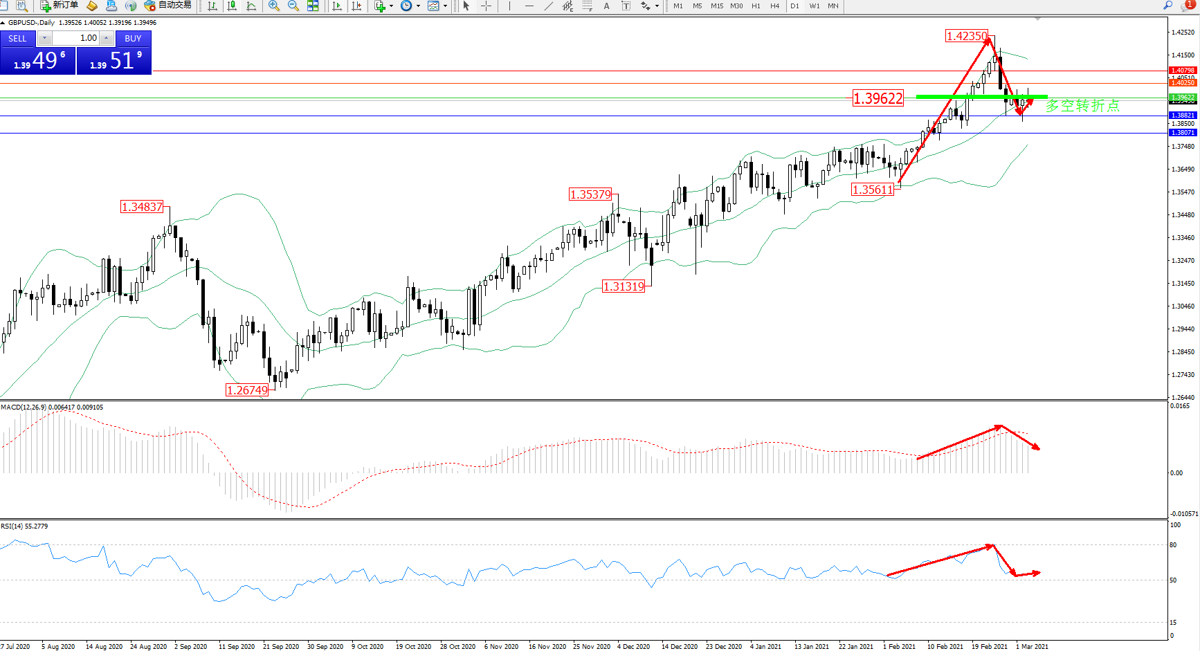 备选策略:1.39622上方看涨,目标1.40250、1.40798