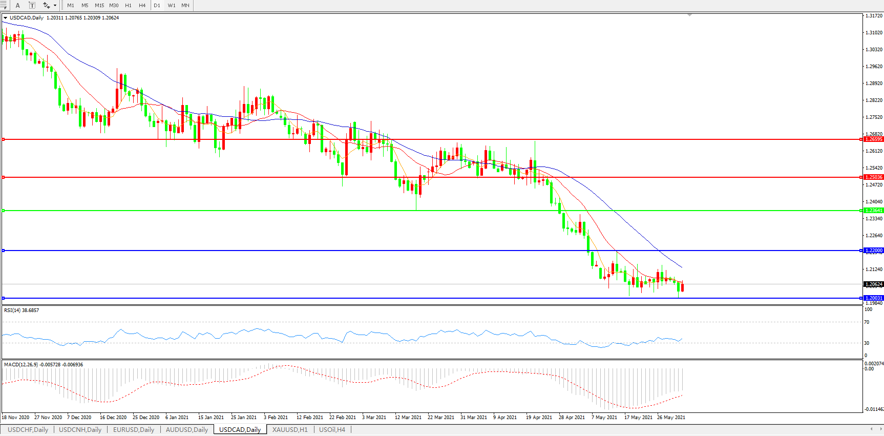 美元兑加元USDCAD    日线图: