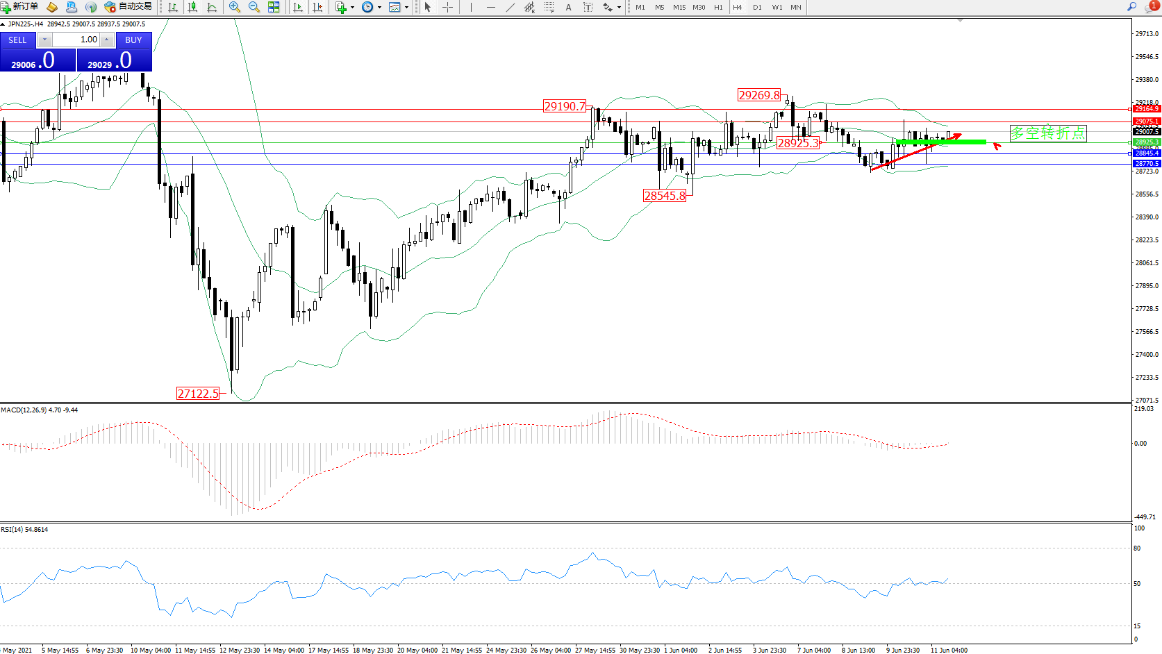 交易策略:28925上方看涨,目标29075、29164