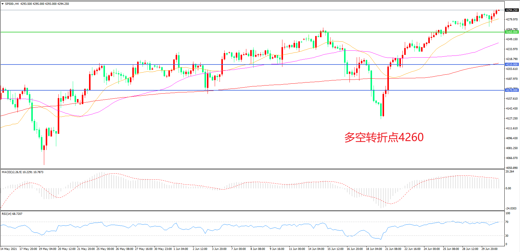 多空转折点:4260.00