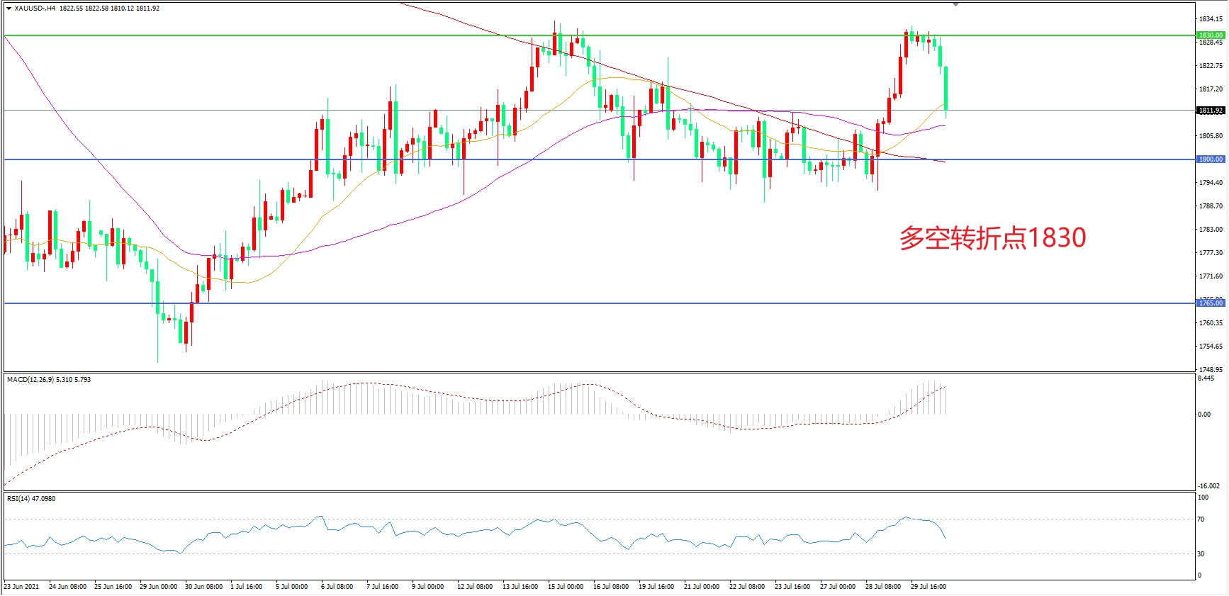 多空转折点:1800.00
