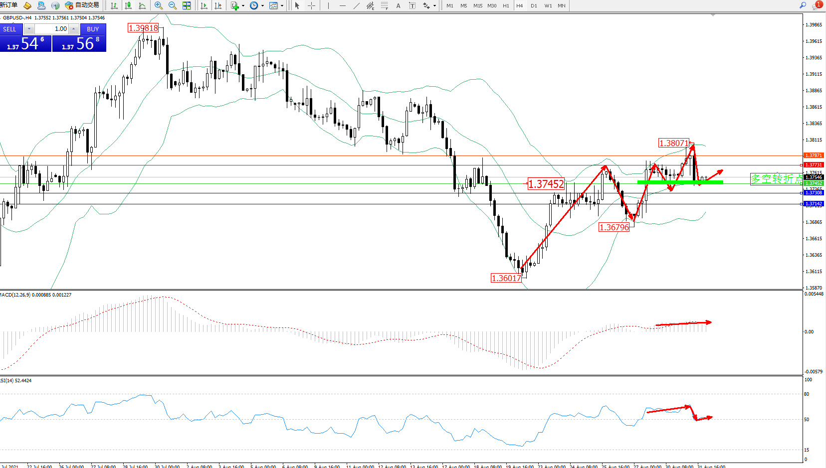 交易策略:1.37452上方看涨,目标1.37731、1.37871