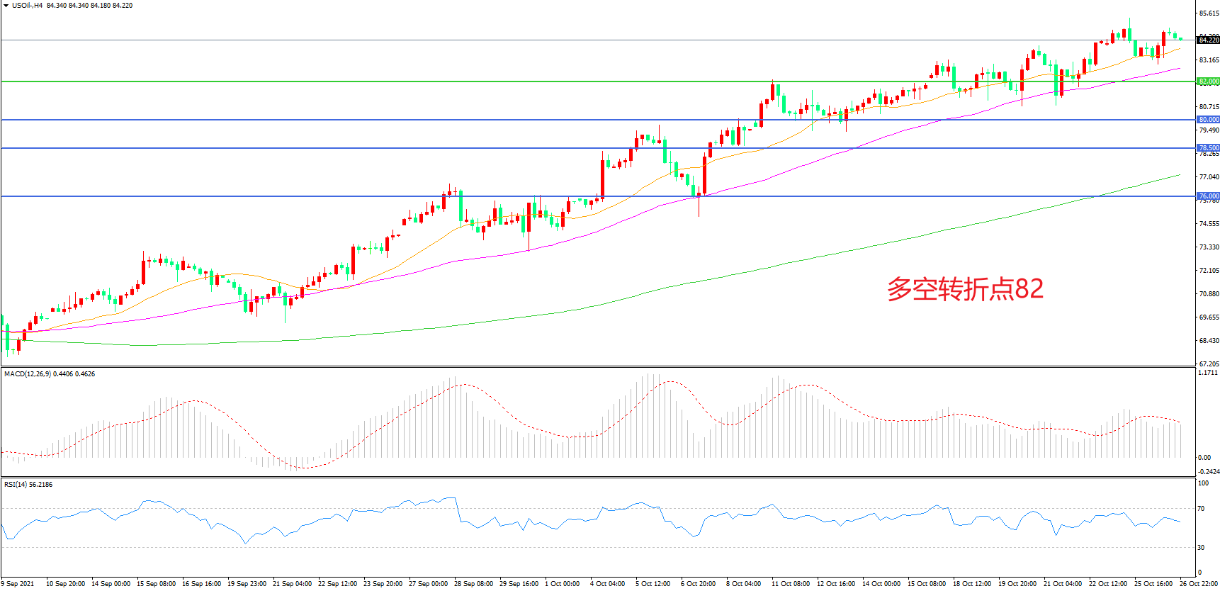 多空转折点:82.00