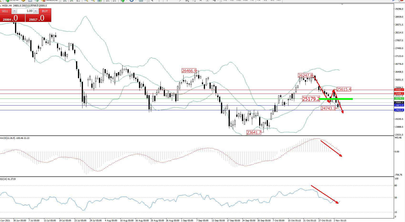 恒指HK50 ——4小时K线图显示: