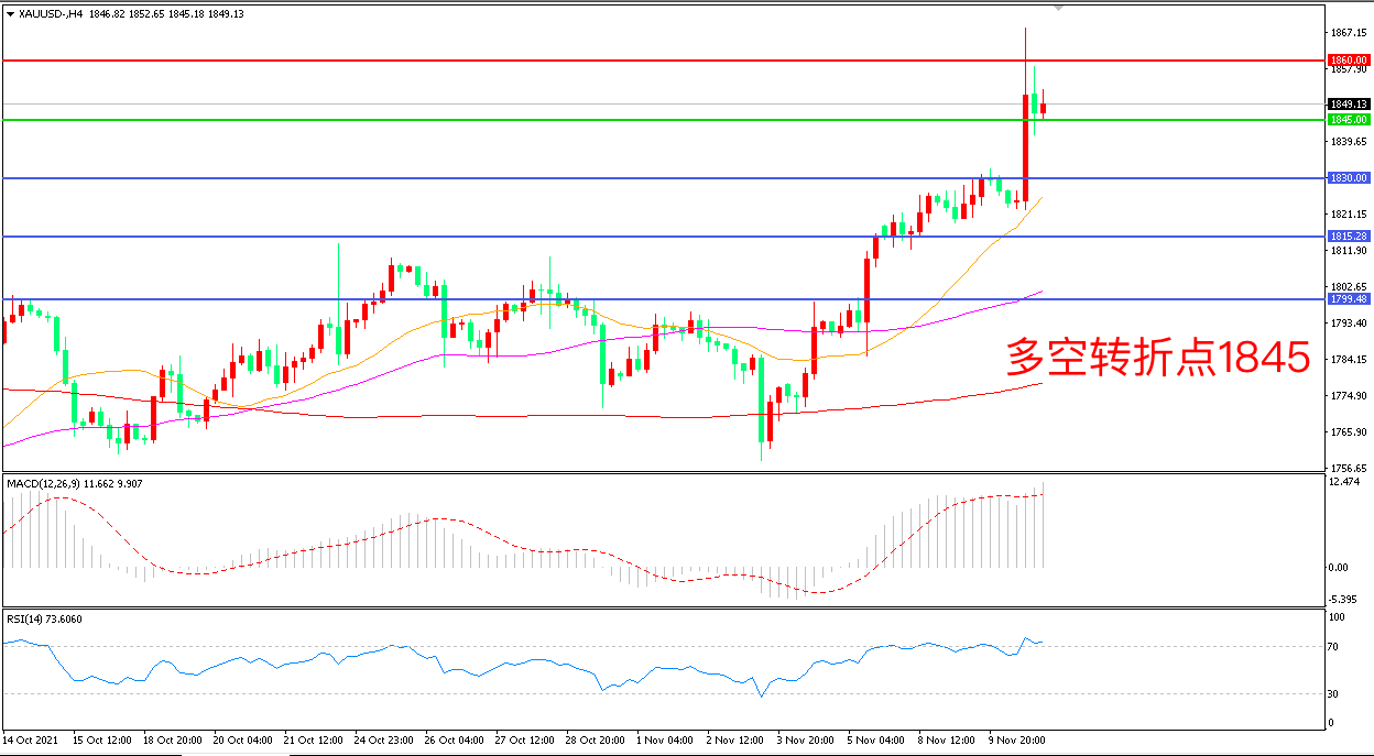 交易策略:在1845.00之上看涨,目标1860.00       1875.00