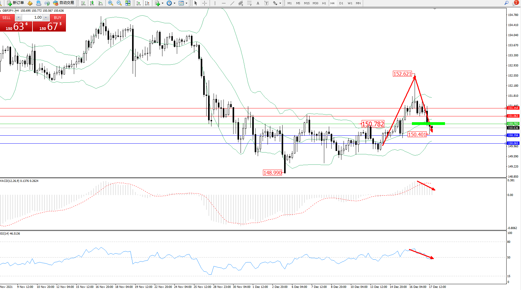 交易策略:150.782下方看跌,目标150.356、150.065