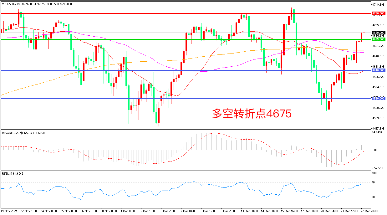 交易策略:在4675.00之上看涨,目标4730.00                           4800.00