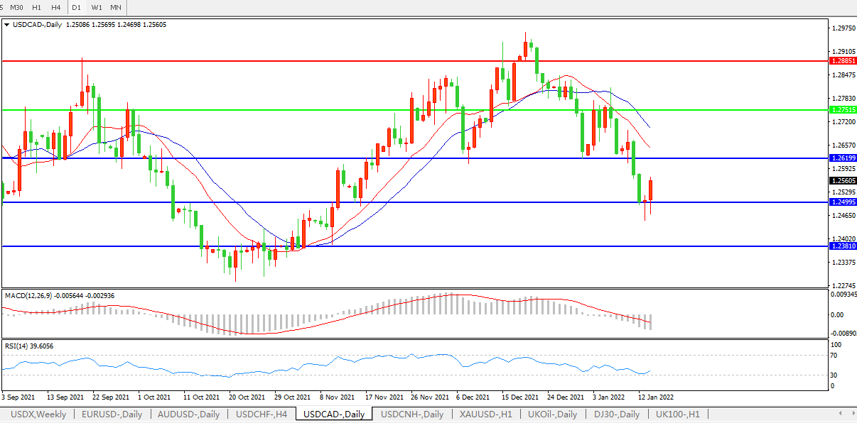美元兑加元USDCAD 日线图: