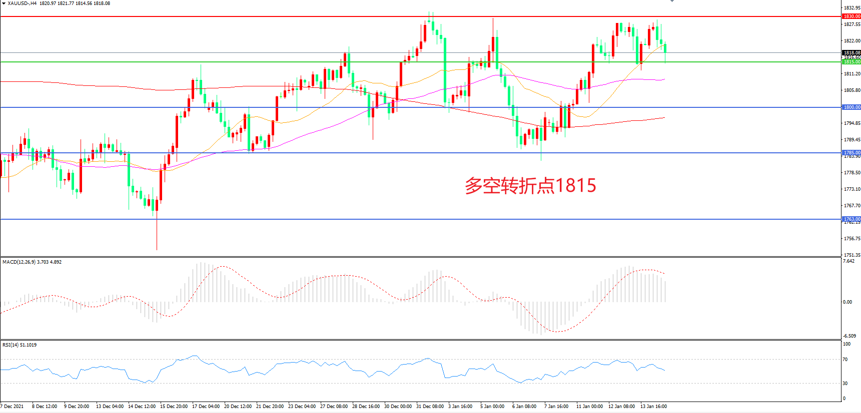 交易策略:在1815.00之上看涨,目标1830.00 1845.00