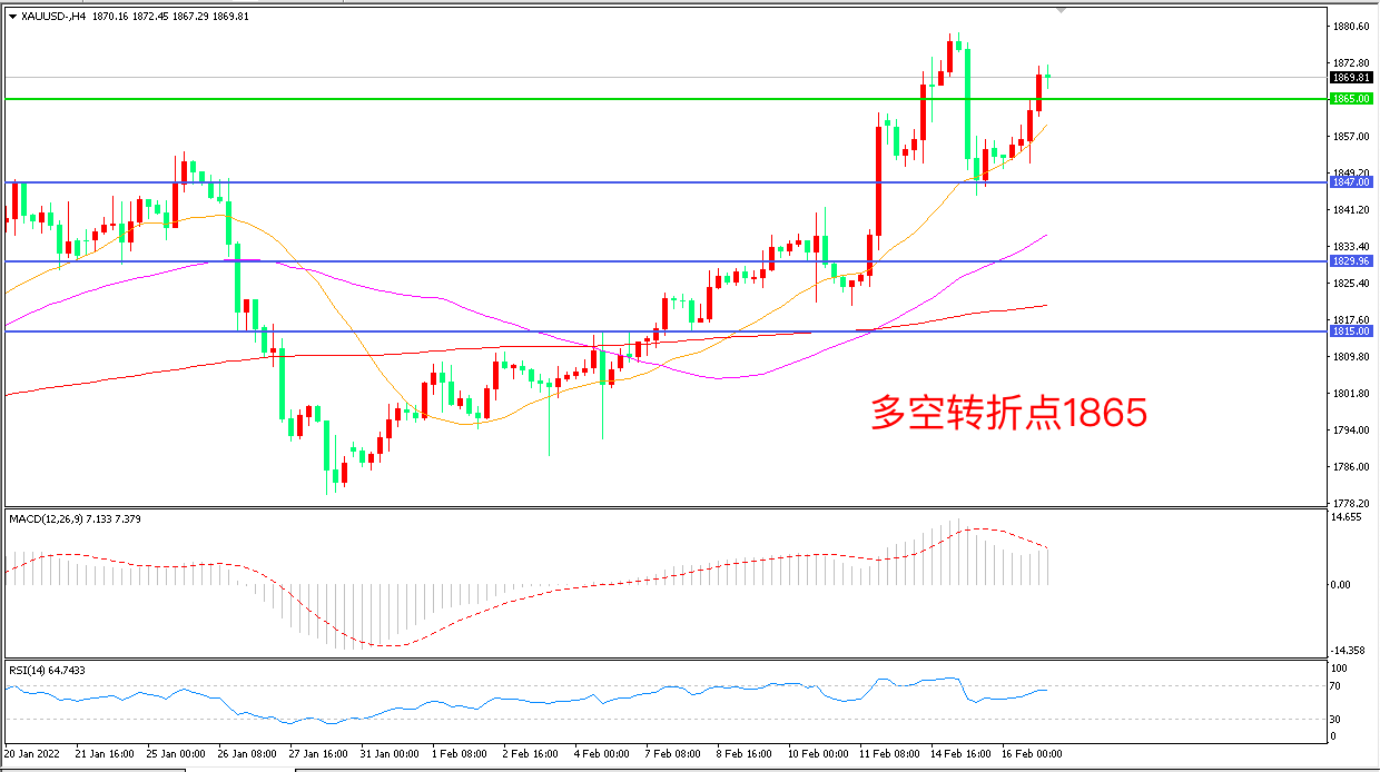 交易策略:在1865.00之上看涨,目标1880.00       1900.00