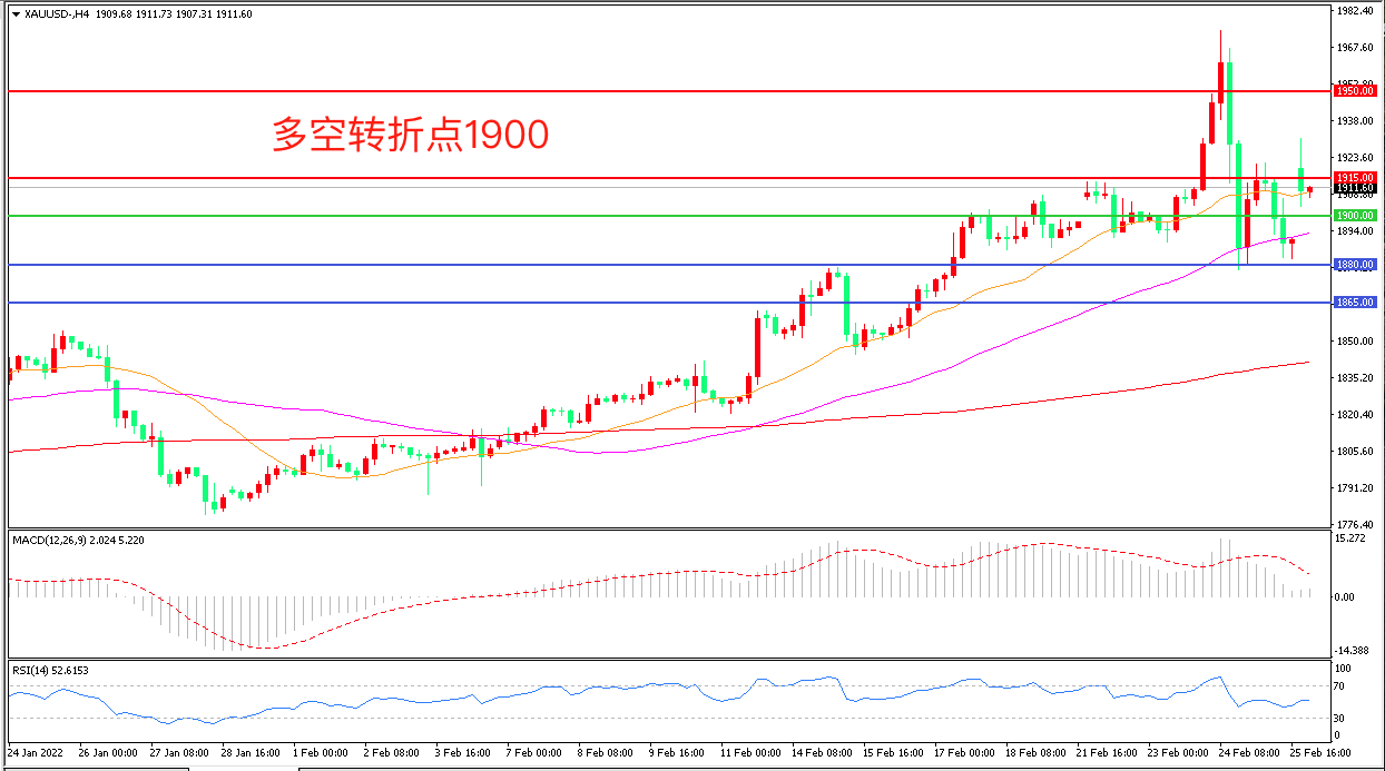 交易策略:在1900.00之上看涨,目标1915.00       1930.00