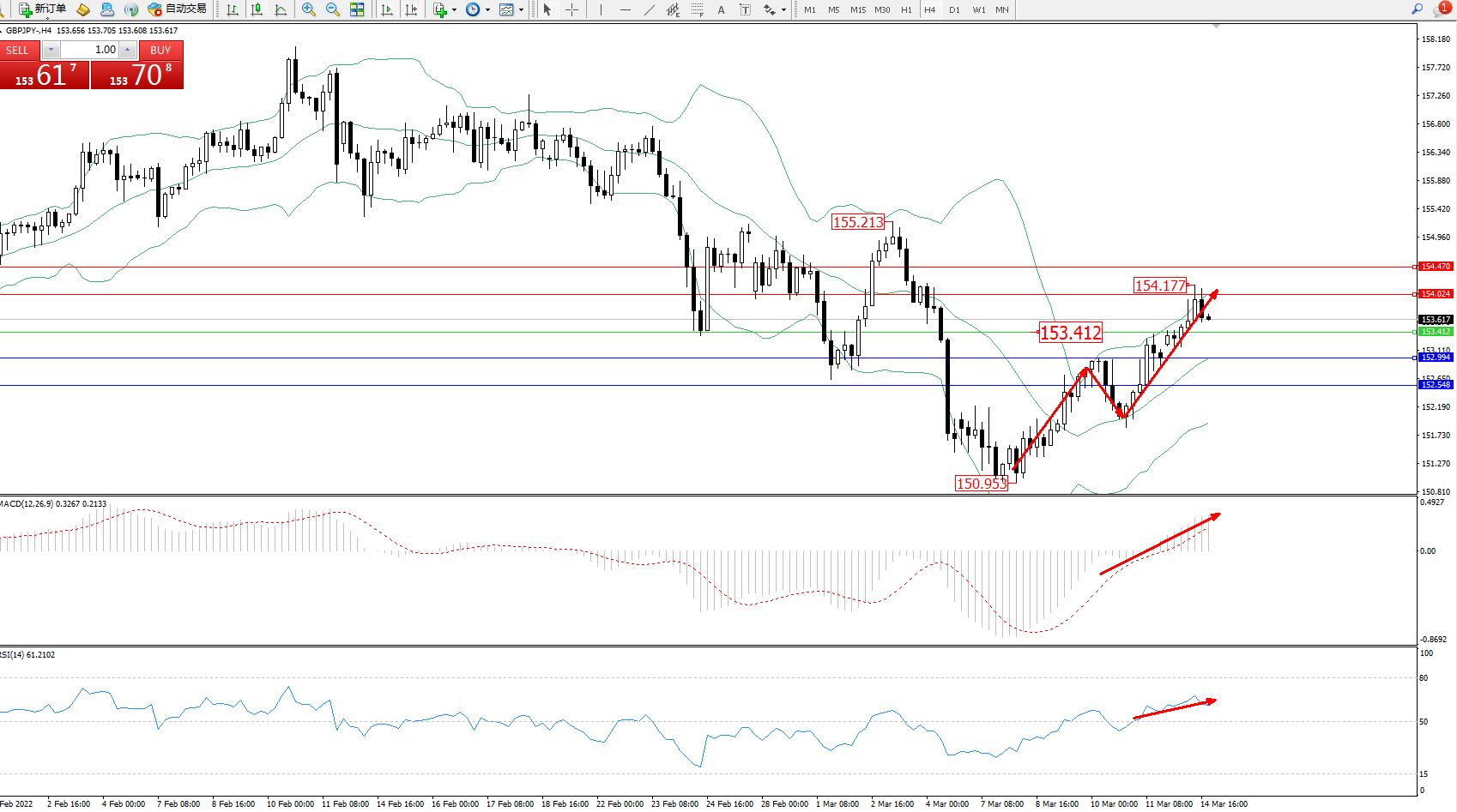 交易策略:153.412上方看涨,目标154.024、154.470