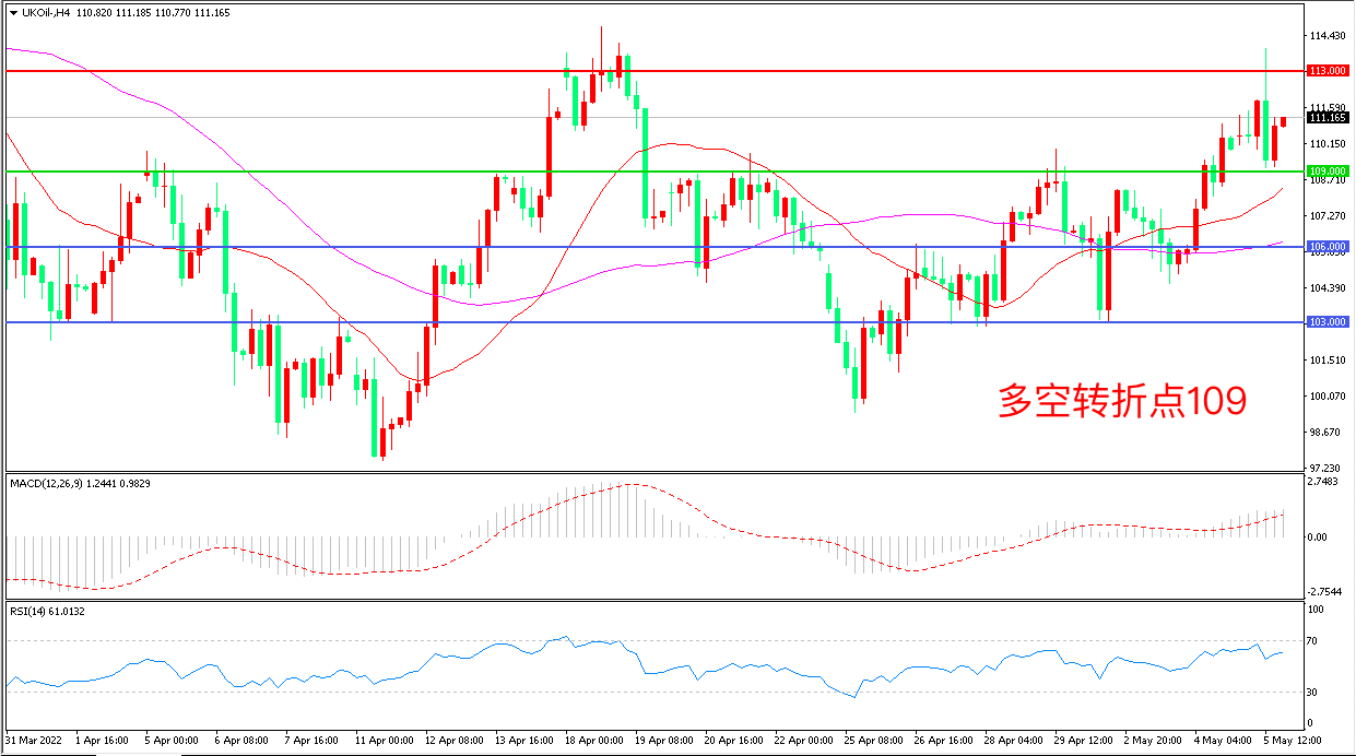 周四(5月5日),以沙特和俄罗斯为首的产油国联盟OPEC+坚持小幅增产的原定计划,仅增产43.2万桶/日,布伦特原油延续强势表现,收报111.65美元/桶。有数据显示,OPEC在4月仅增产了1万桶/日,表明该组织在按计划提高产量方面确实存在困难,欧盟计划对俄罗斯石油实施禁令仍在讨论中,重点关注后续进展。