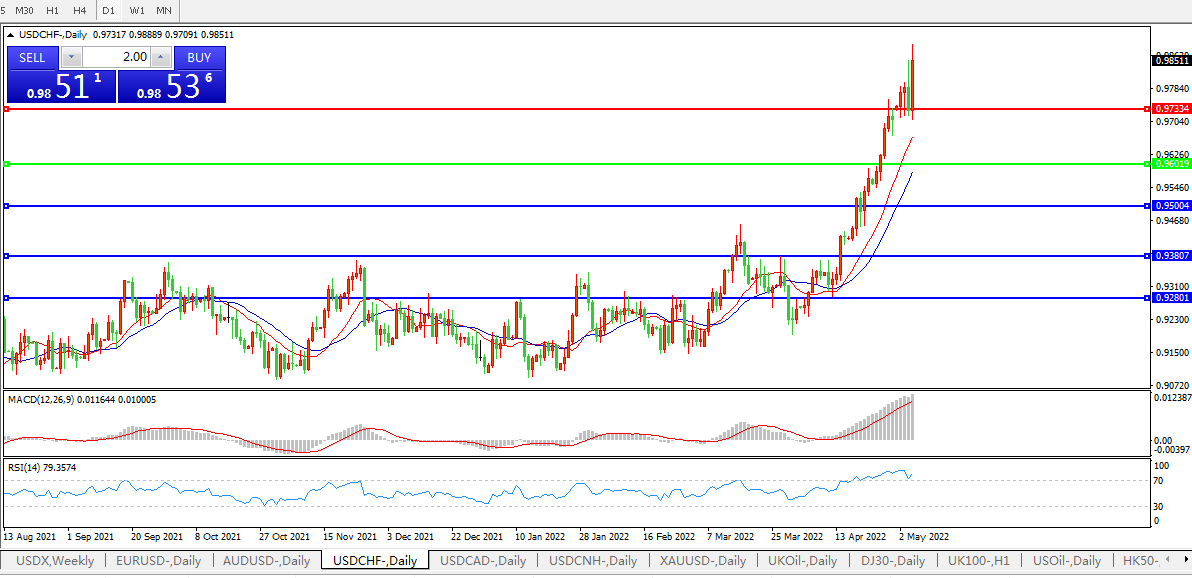 美元兑瑞郎USDCHF 日线图: