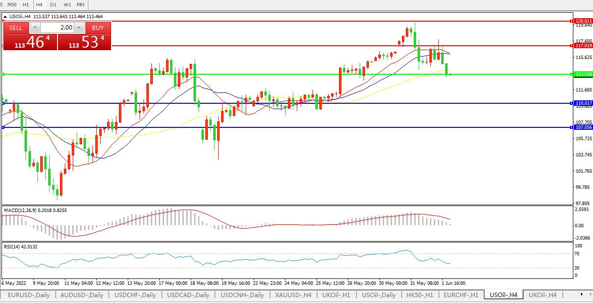 4小时图看,油价跌破均线下行,短线走势偏弱, MACD动能柱缩短,RSI指标走弱,日内延续弱势概率较大。
