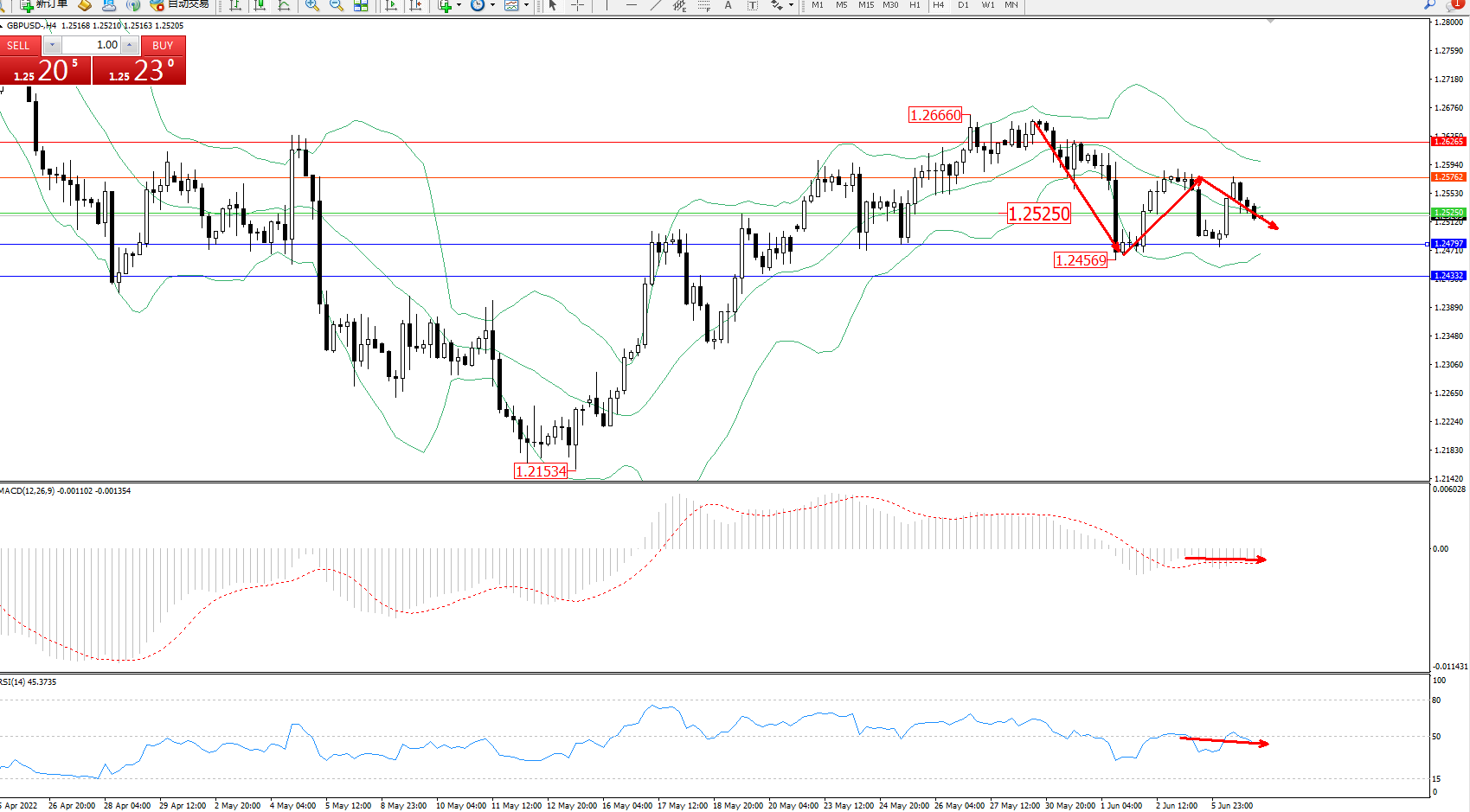 英镑美元GBPUSD ——4小时K线图显示: