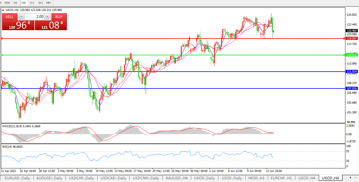 布伦特原油期货结算价下跌1.10美元,报每桶121.17美元;早前盘中一度涨逾2%。有迹象显示美国民主党人在自己和白宫面临日增的遏制能源成本和通胀压力下正考虑更多能源立法。与此同时,人们担心美联储将以高于预期的幅度加息,令市场承压。