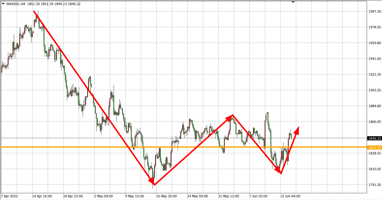 交易策略:在1836.00之下看跌,目标1820.00          1800.00