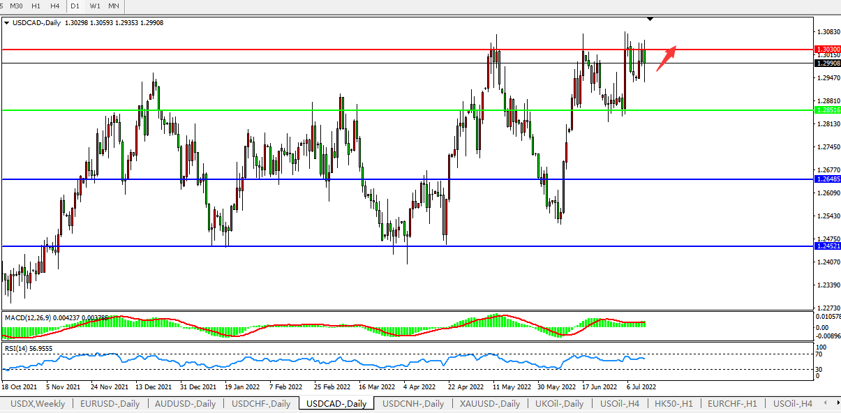 美元兑加元USDCAD 日线图: