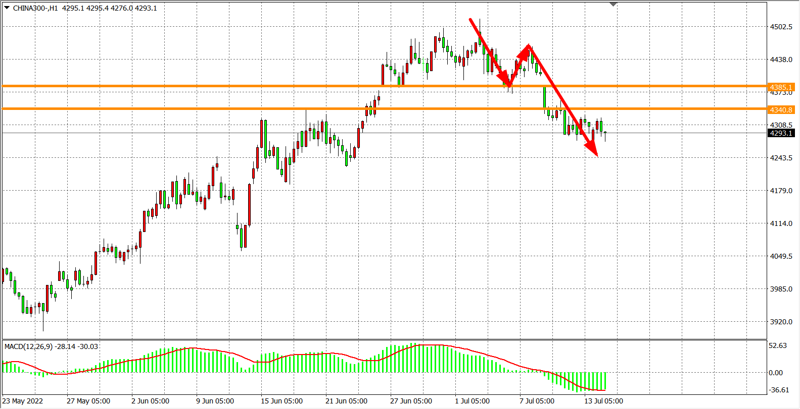 沪深300:4340之下走弱