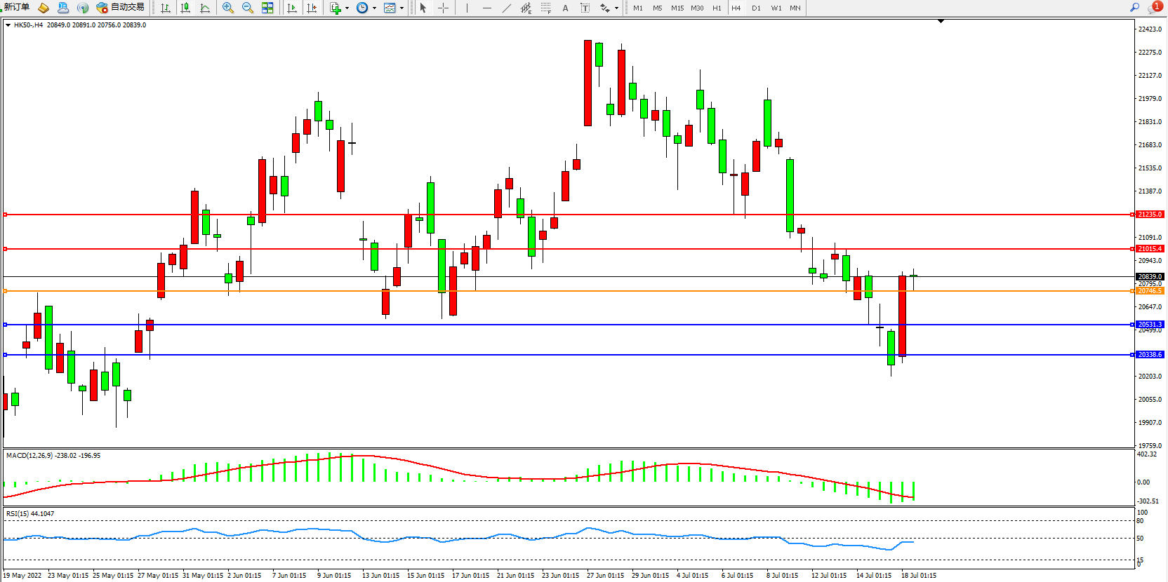 恒指HK50 4小时图