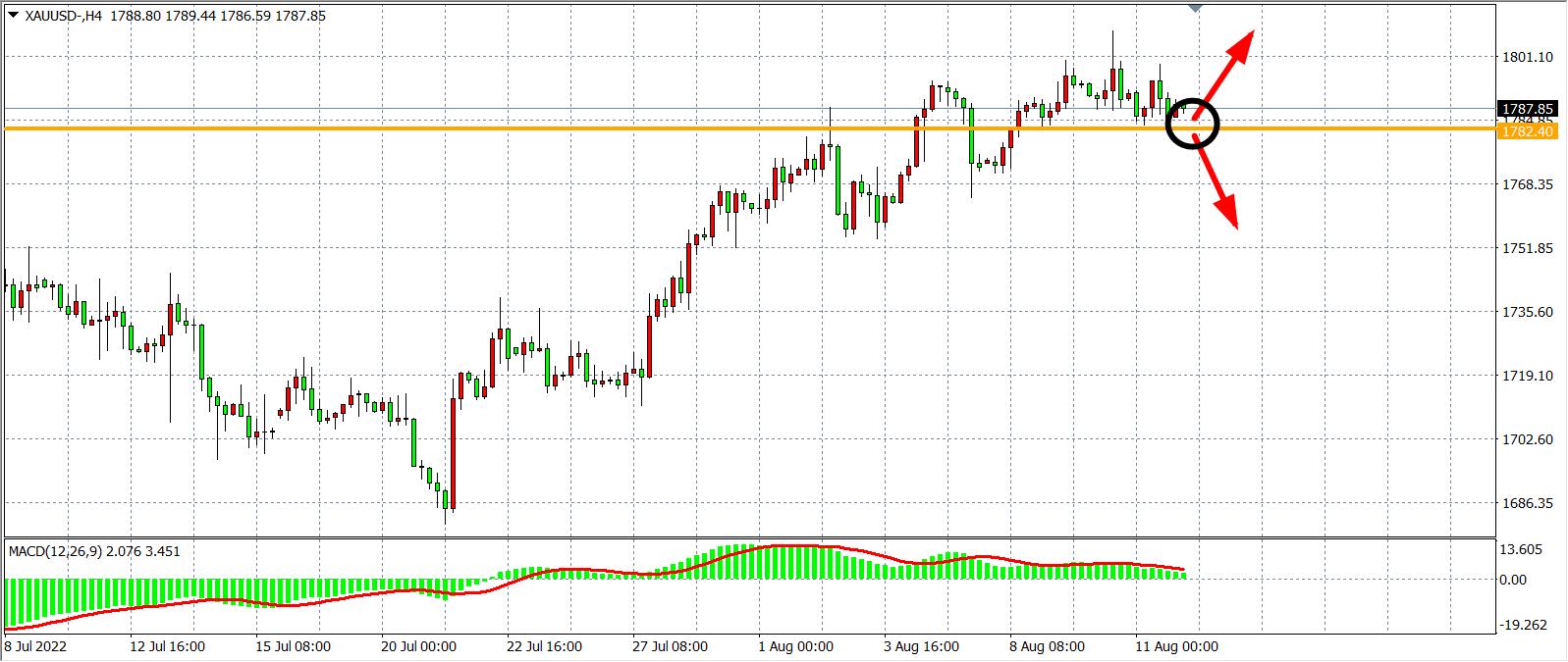 备选策略:在1782.00之下看跌,目标1770.00 1755.00