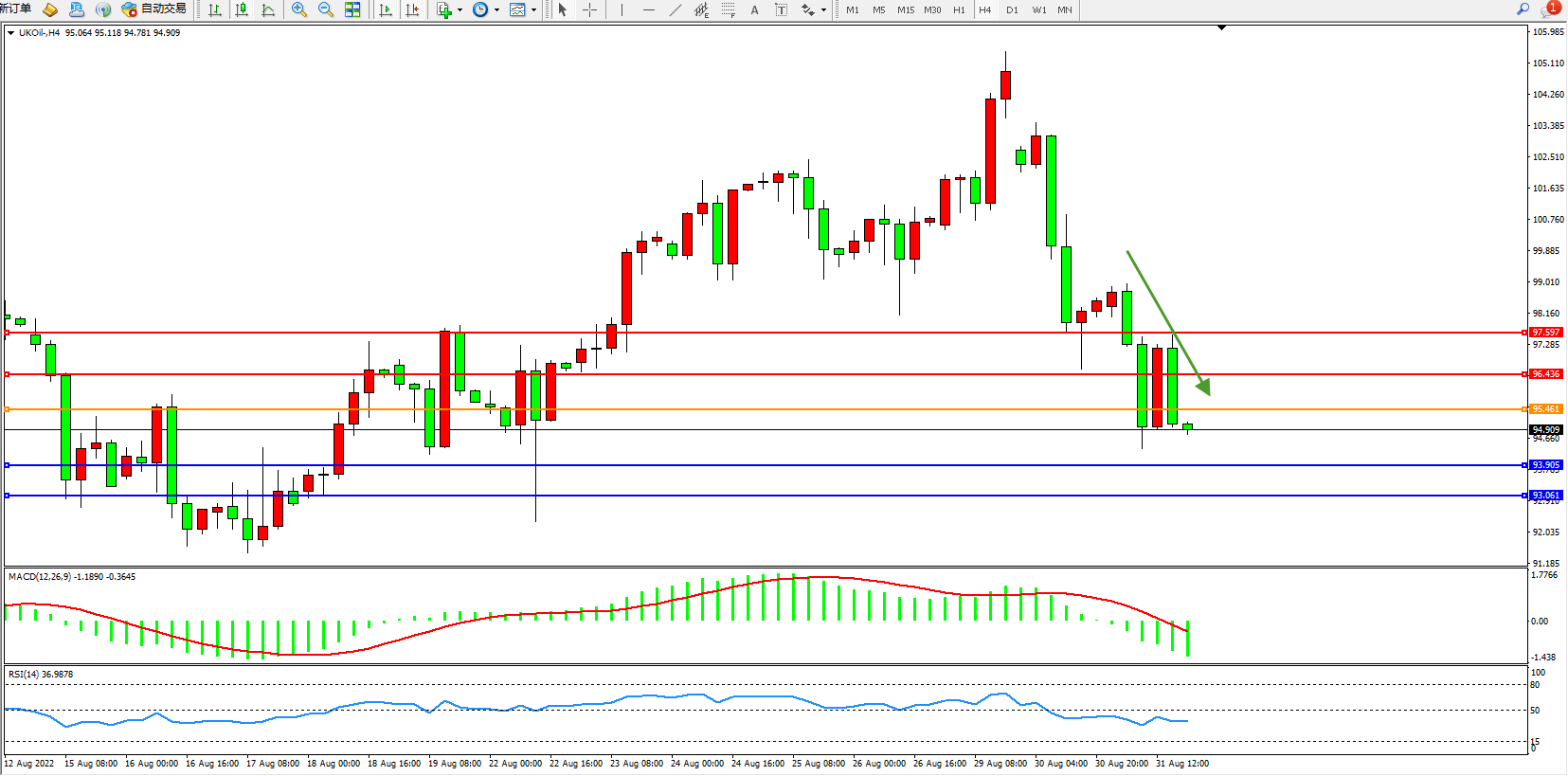 布油UKOil——4小时K线图显示: