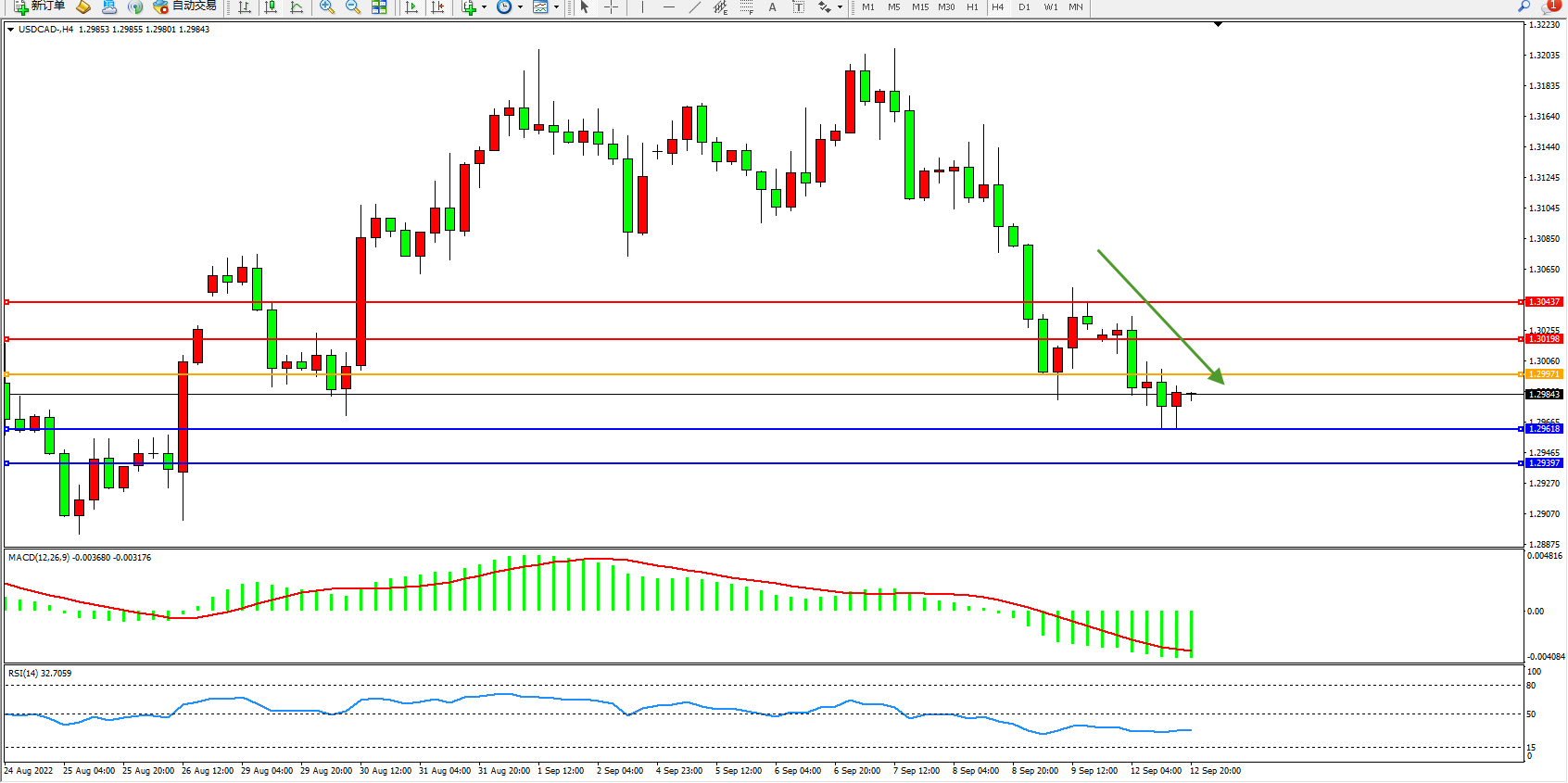 美元加元USDCAD——4小时K线图显示:
