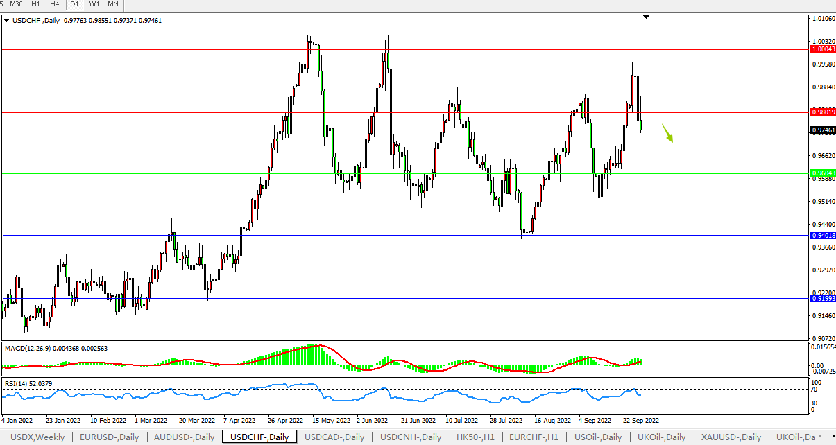 美元兑瑞郎USDCHF 日线图