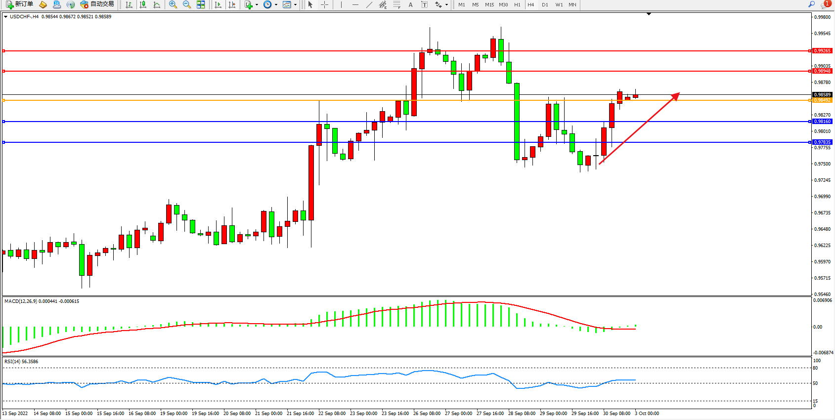 交易策略:0.98492上方看涨,目标0.98948、0.99265