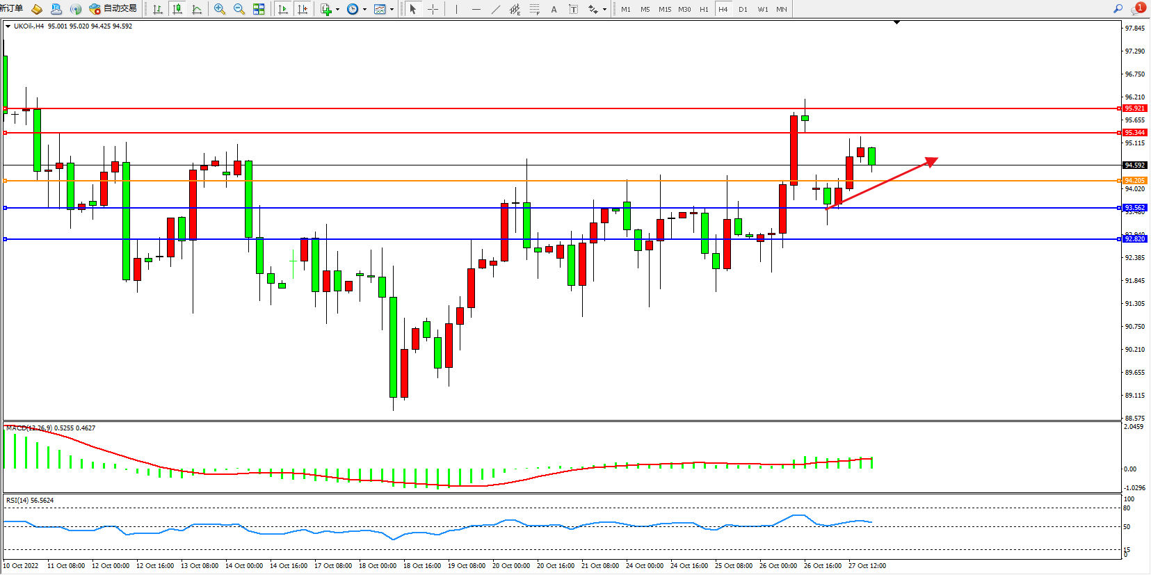 布油UKOil——4小时K线图显示: