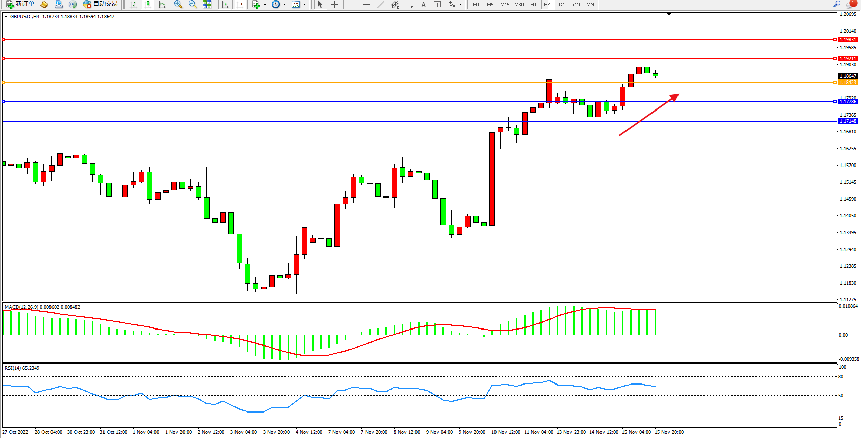 交易策略:1.18423上方看涨,目标1.19211、1.19831