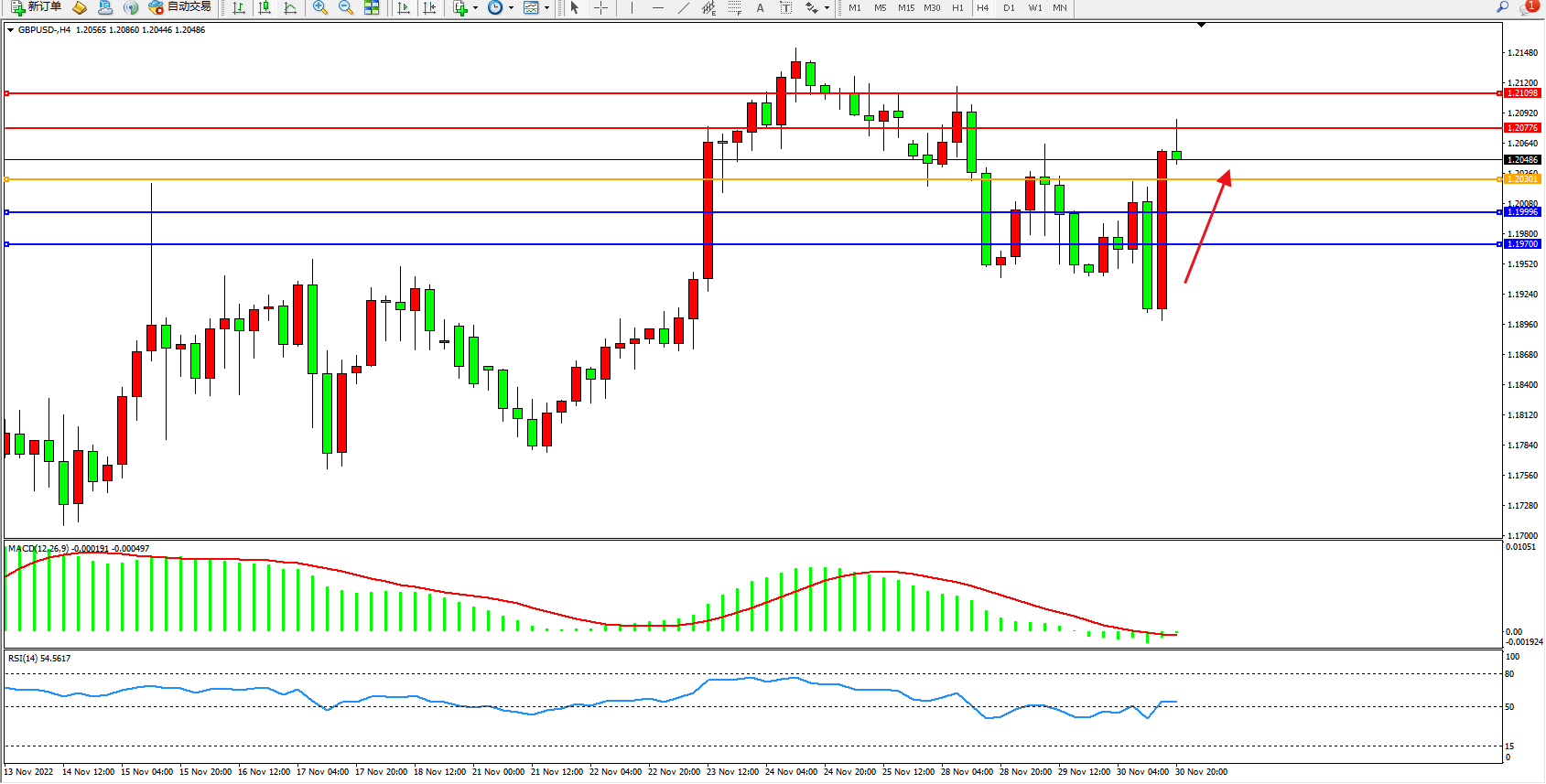 交易策略:1.20301上方看涨,目标1.20776、1.21098