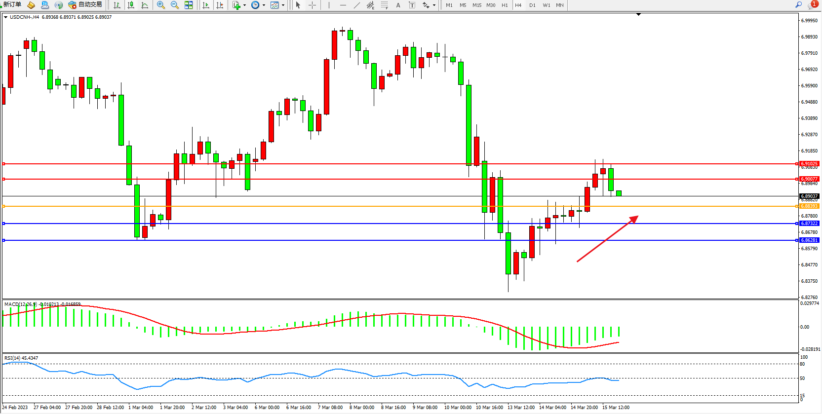 交易策略:6.88393上方看涨,目标6.90077 6.91025